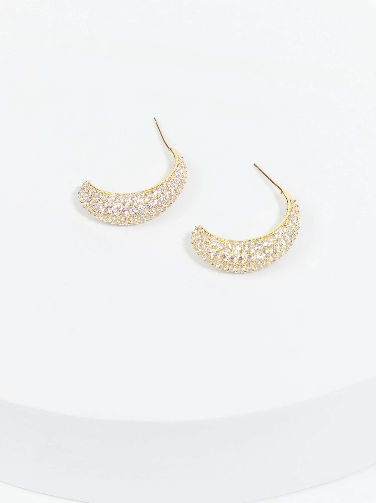 Elevate your jewelry collection with these 18k gold-dipped semi hoop earrings, meticulously adorned with an array of glistening crystal rhinestones. Their exquisite design radiates elegance, making them the perfect choice for both formal events and everyday glamour.