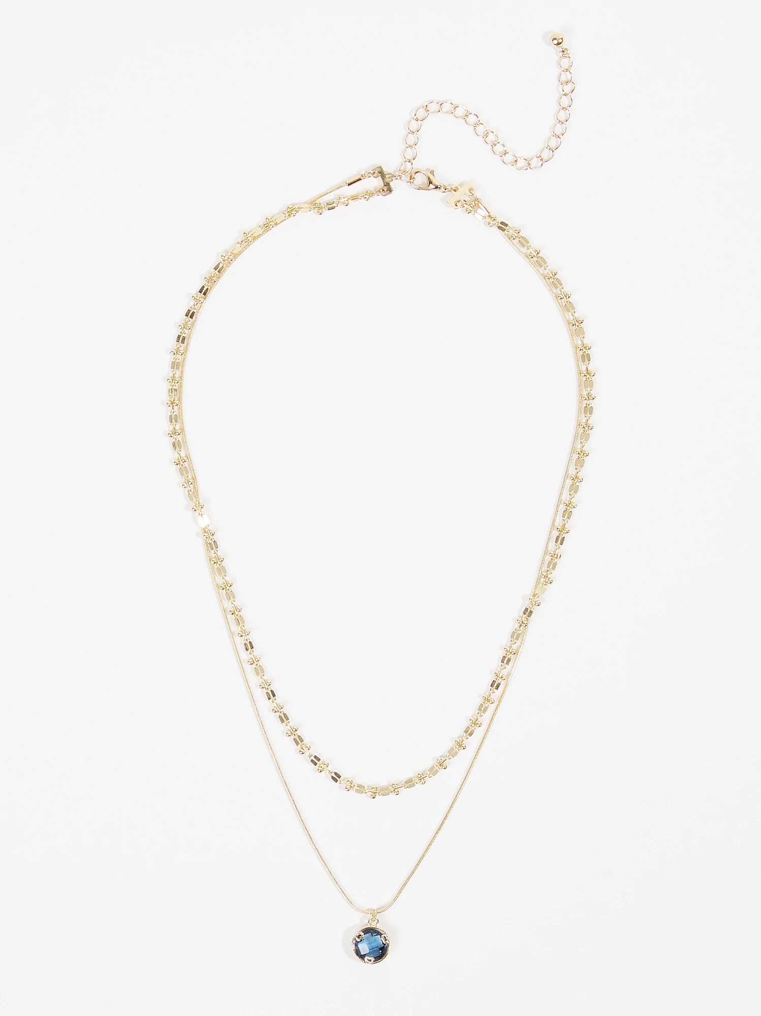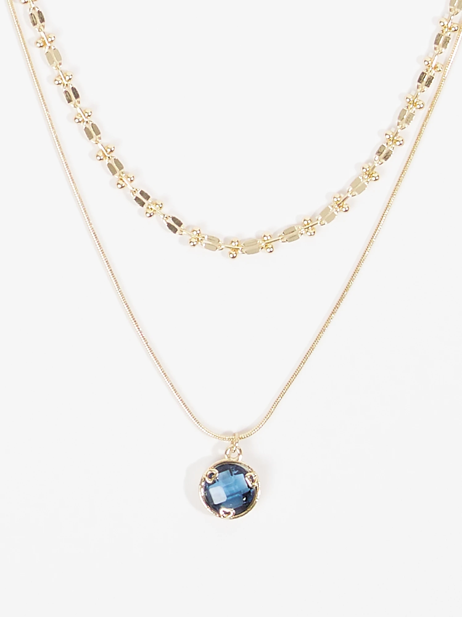 A chic and versatile accessory designed to add depth and elegance to your ensemble, this layered necklace effortlessly exudes timeless luxury and depth. The stone charm, carefully placed among the layers, adds a touch of color and sparkle. Whether you’re dressing up for a formal event or adding some flair to your everyday style, this necklace effortlessly enhances your look.