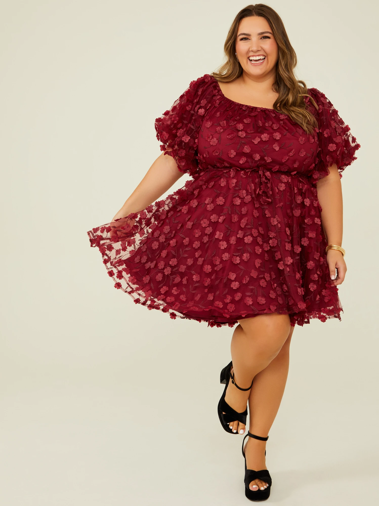 This dress is nothing but a dream! With its elegant floral applique detailing and romantic puff sleeves, you are sure to wow the crowd. The beautiful fit is complemented with a stretchy elastic top hem and waistline for maximum comfort. Feel radiantly beautiful and feminine in this one-of-a-kind beauty.