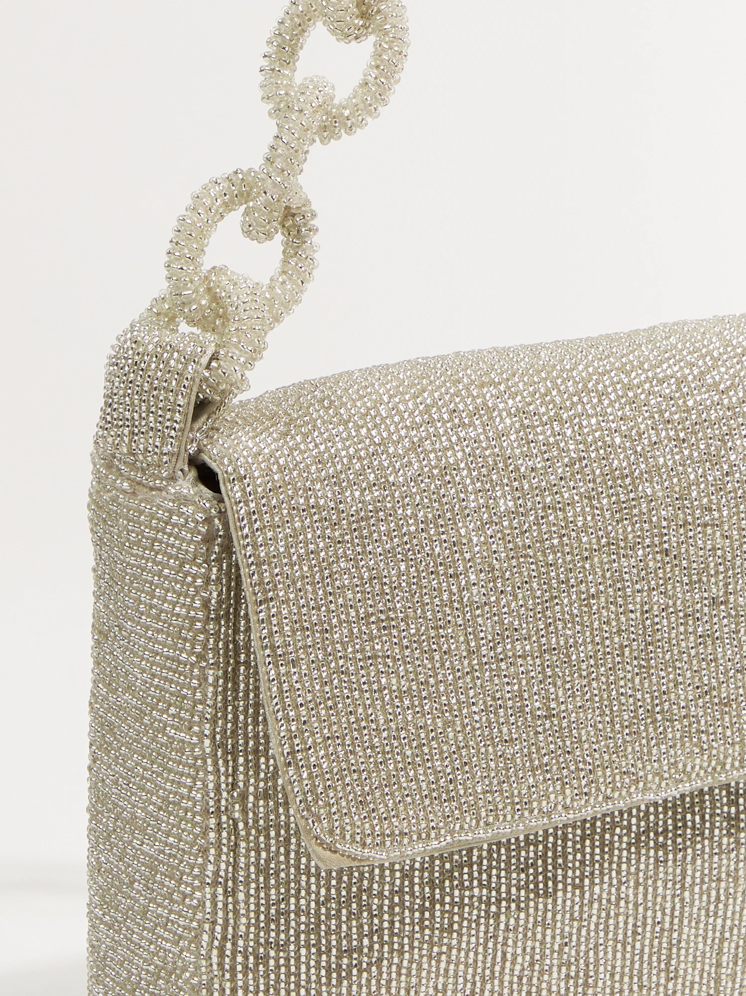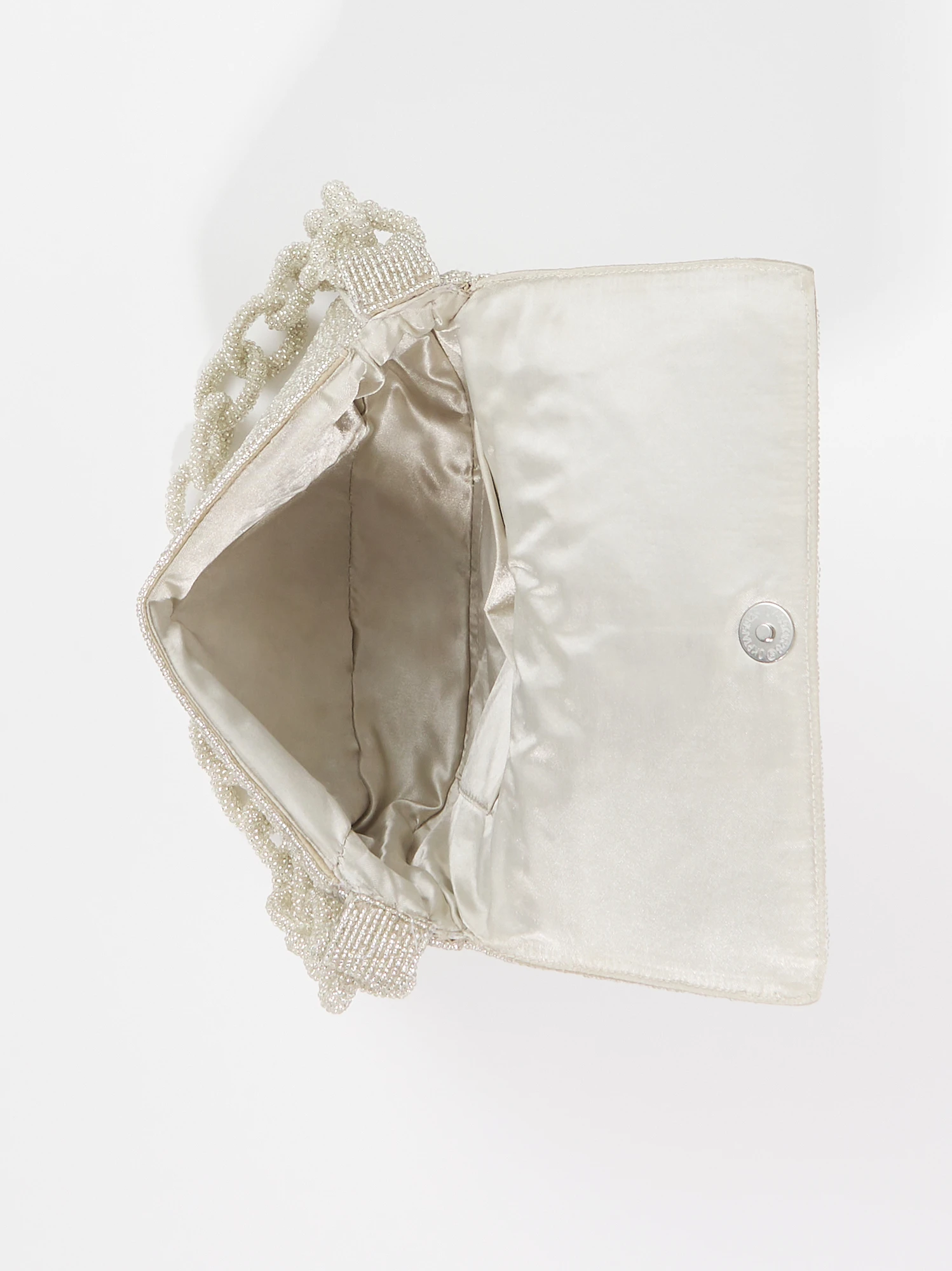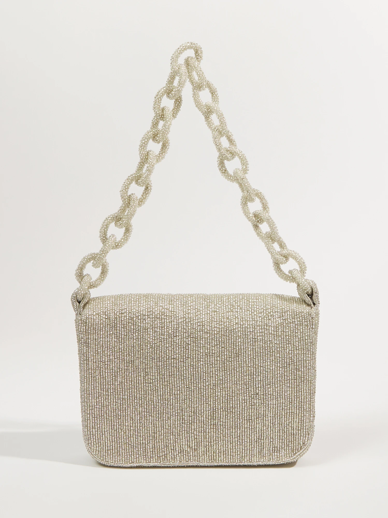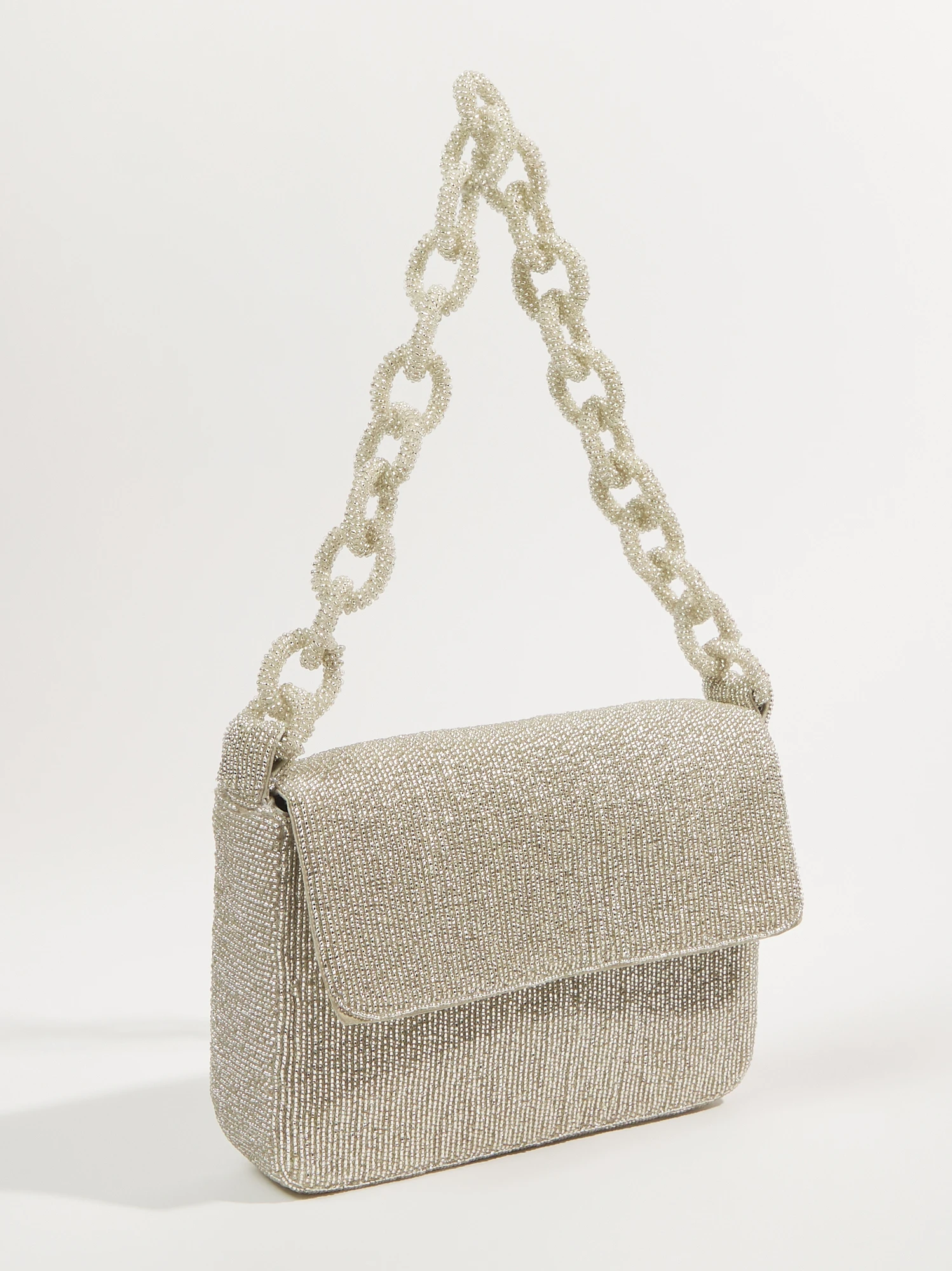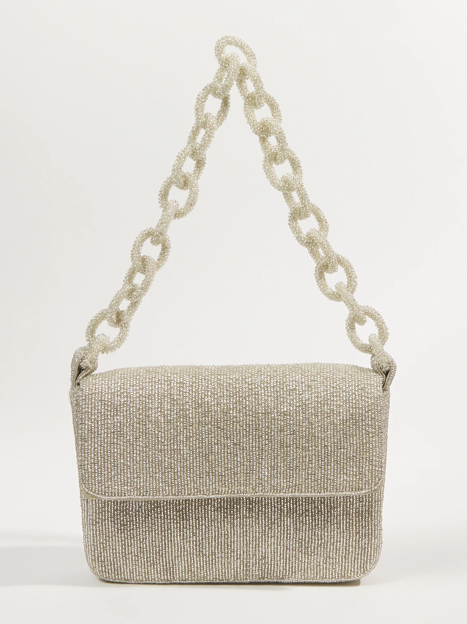 - Beaded, Chain link strap, One interior slip pocket