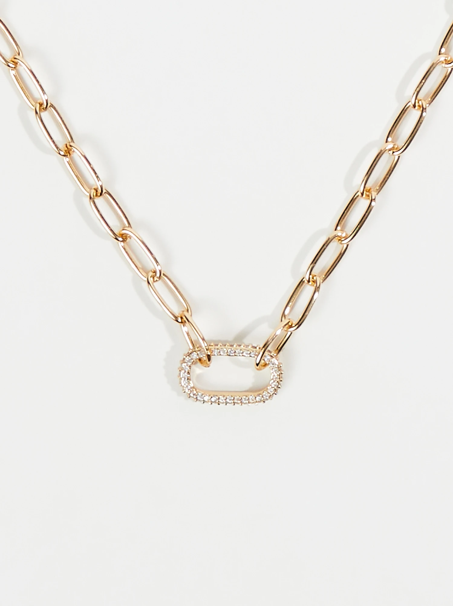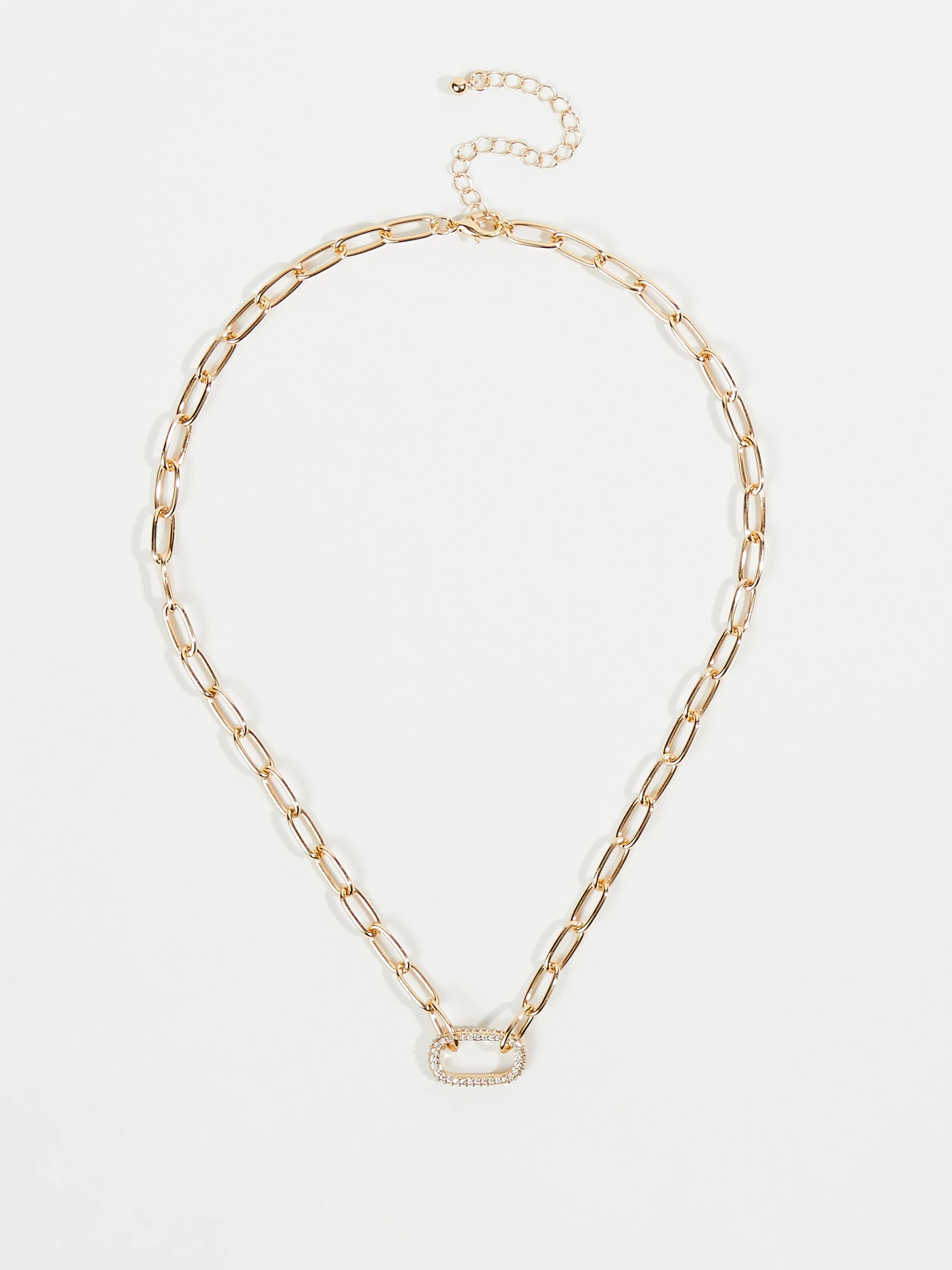 This stunning gold chain combines classic elegance with a touch of glamour! The timeless chain link design is adorned with a pretty rhinestone centerpiece that effortlessly captures the light. Whether you’re layering on other gold pieces or wearing as a statement piece, this necklace brings a sense of beauty and glamour to your ensemble.
