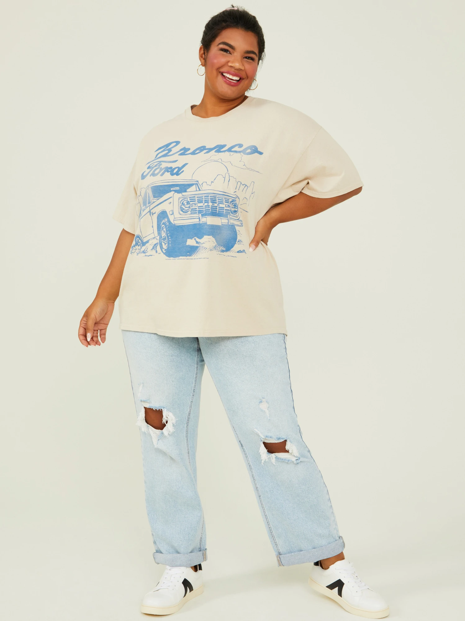 The Ford Bronco graphic on the front features a distressed blue text, creating a timeless, vintage style as it pays homage to the iconic symbol of adventure. The breathable fabric keeps you cool and comfortable, making it ideal for year-round wear. The oversized fit of this tee ensures a relaxed and comfortable feel, allowing for easy movement and a laid-back vibe! You can easily pair this tee with your favorite jeans or a skirt for a casual and effortlessly fun outfit.