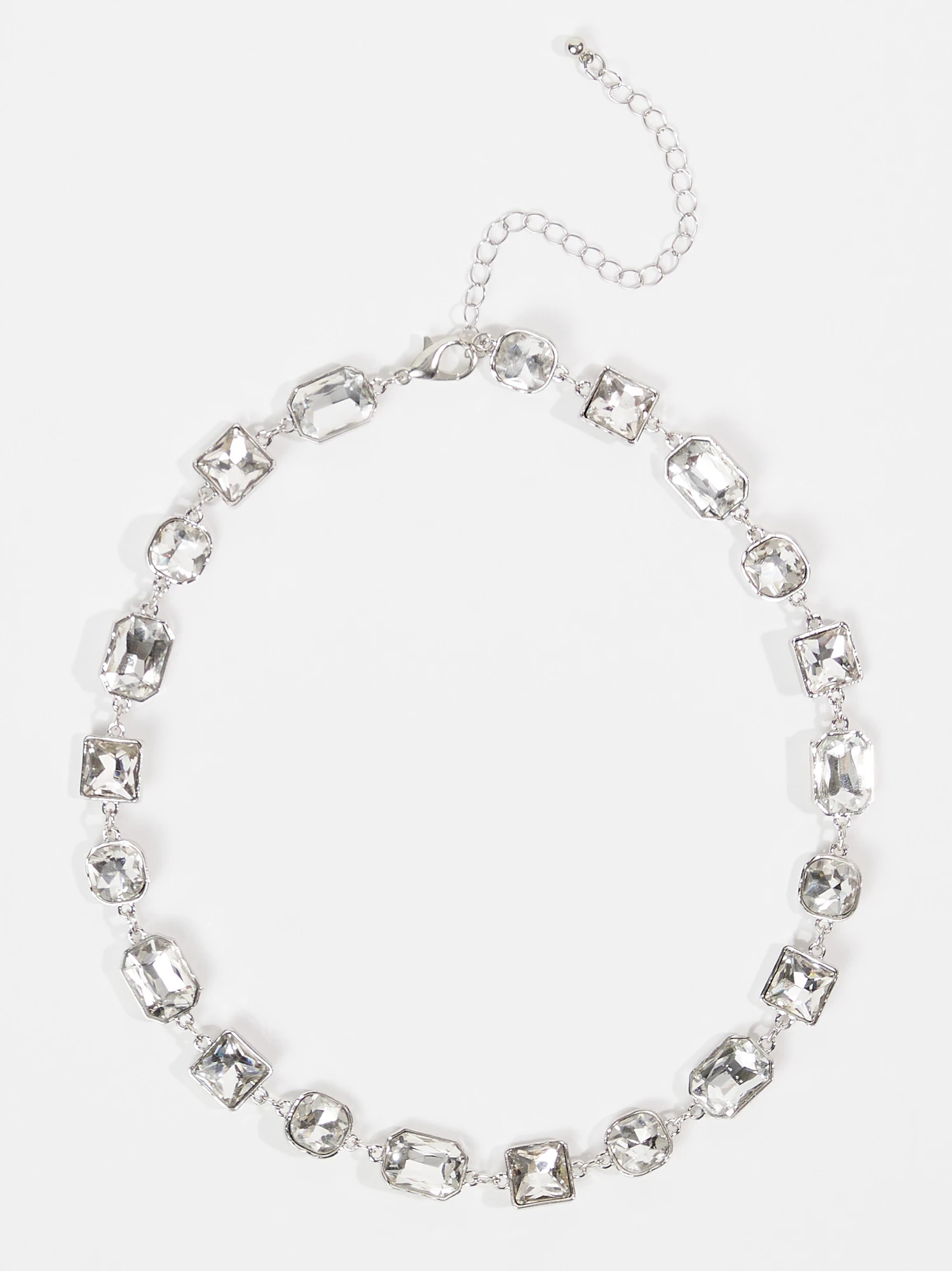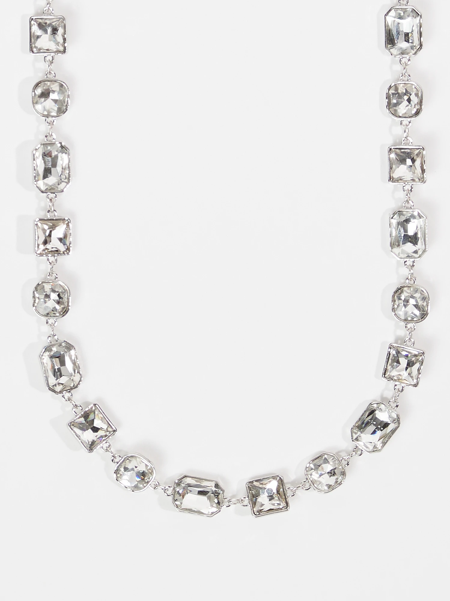 Elevate your style with this unique geometric crystal necklace! The sleek silver chain complements the modern design, making this necklace a versatile addition to your jewelry collection.
