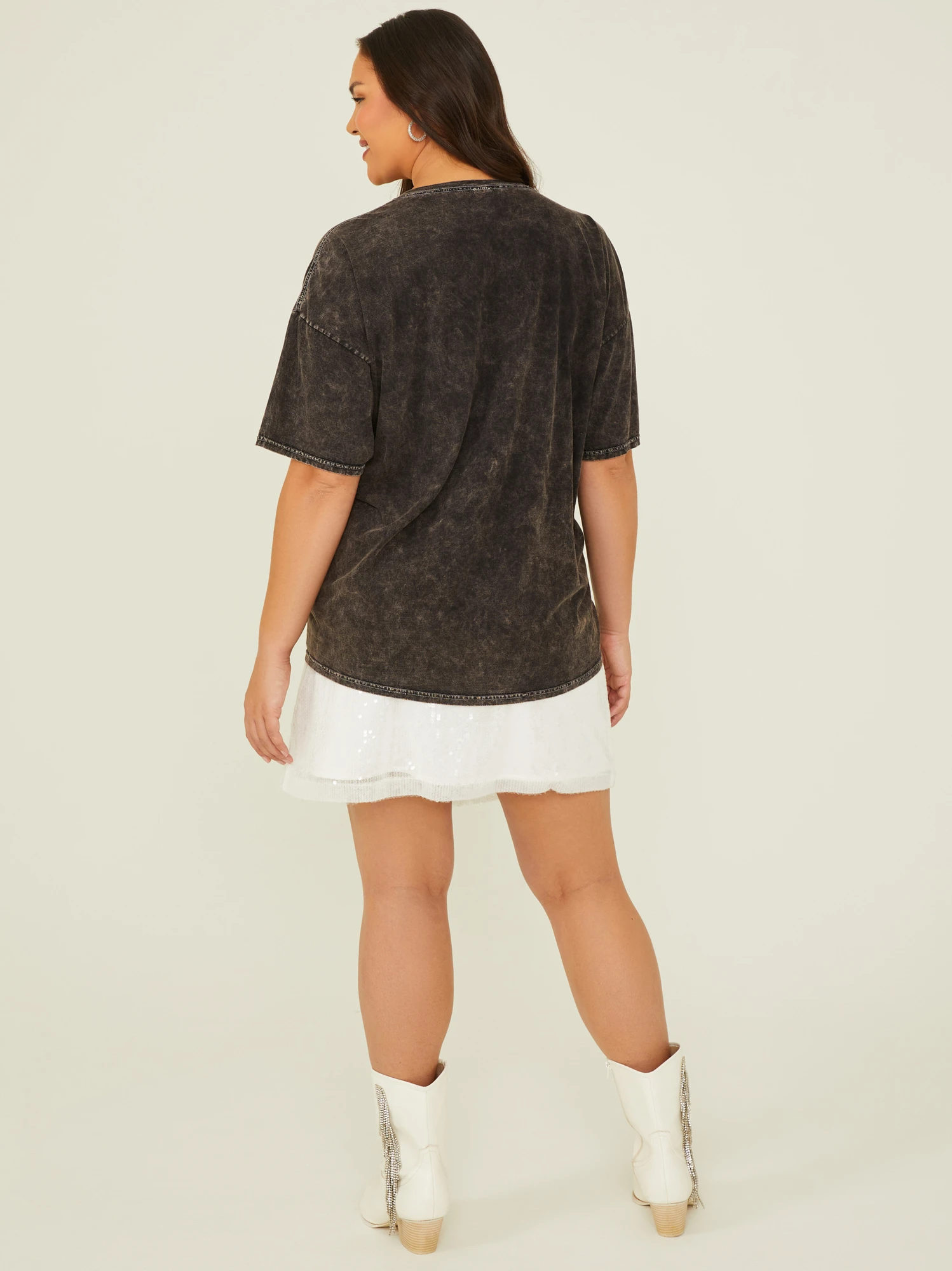 With its relaxed, oversized fit, this tee is complete with a whimsical distressed disco cowgirl graphic. The vintage-inspired design gives it a timeless flair, perfect for adding a touch of retro charm to your wardrobe.