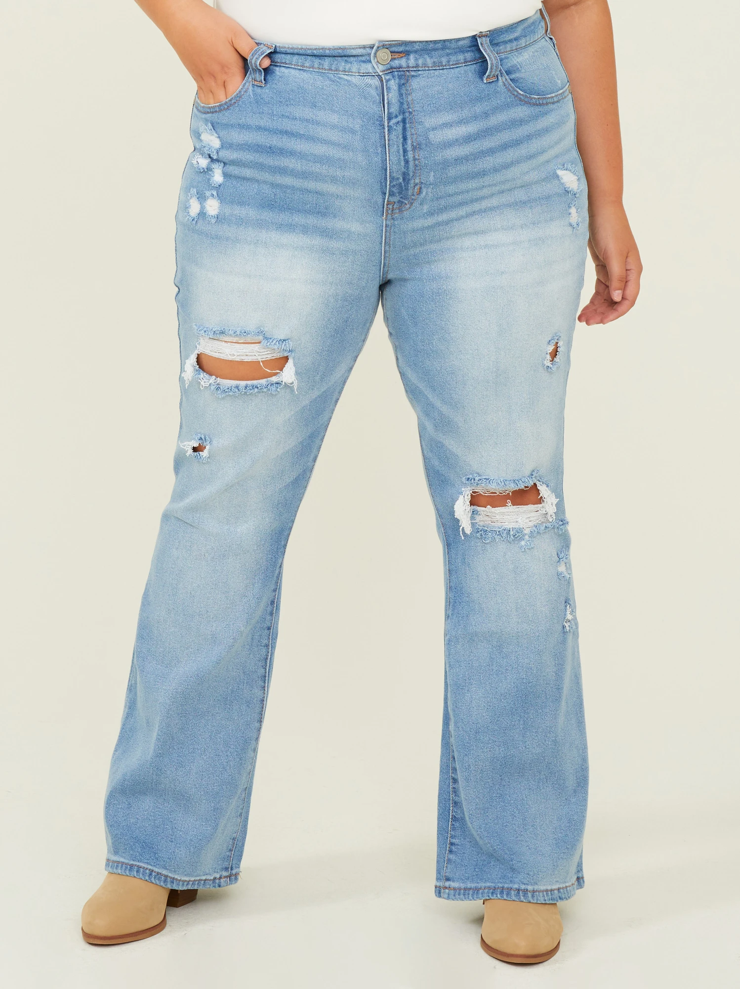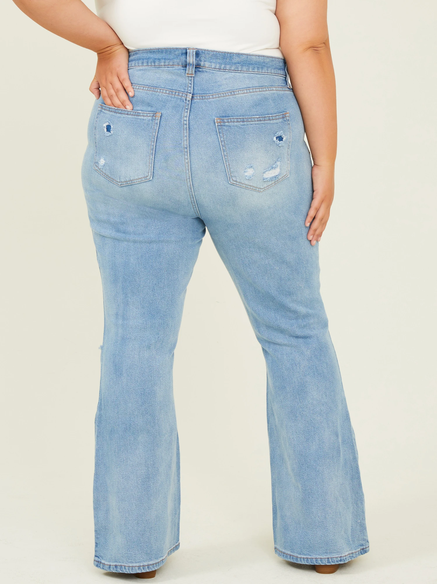 Back in a shorter inseam, these destructed high-rise flares add a fun and timeless touch to your denim line up! Whether you pair them with a graphic tee and sneakers or a bodysuit and booties – you can’t go wrong! These structured shaping jeans feature light distressing and a flare hem that is the all around perfect flattering fit.