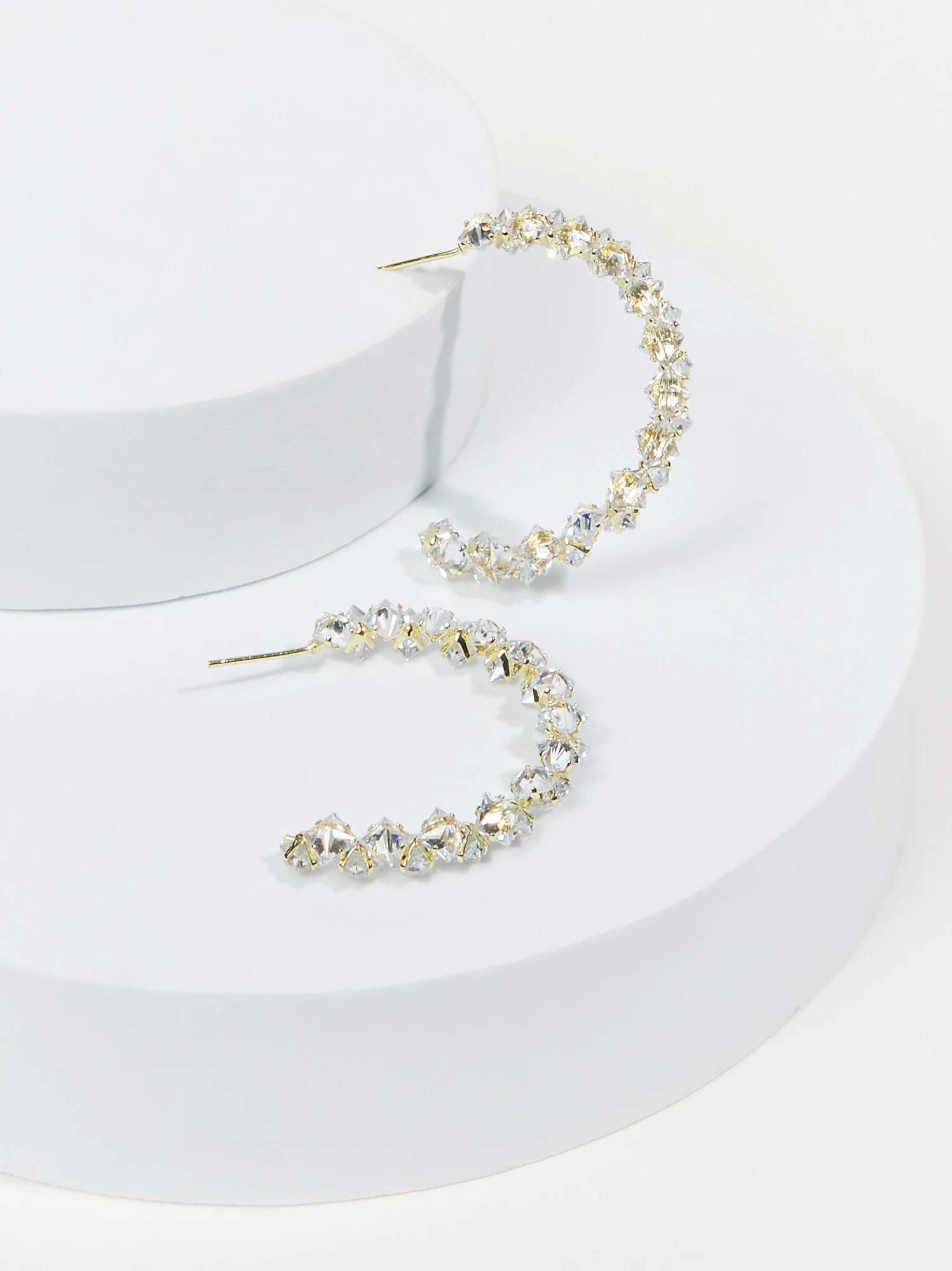 The epitome of glitz and glamour, these stunning hoops have got you covered with their captivating cluster design that’s adorned with an abundance of sparkling crystals that exude opulence from every angle! Whether you’re stepping out for a special event or simply want to add a touch of luxury to your everyday look, these earrings will be your go-to choice.