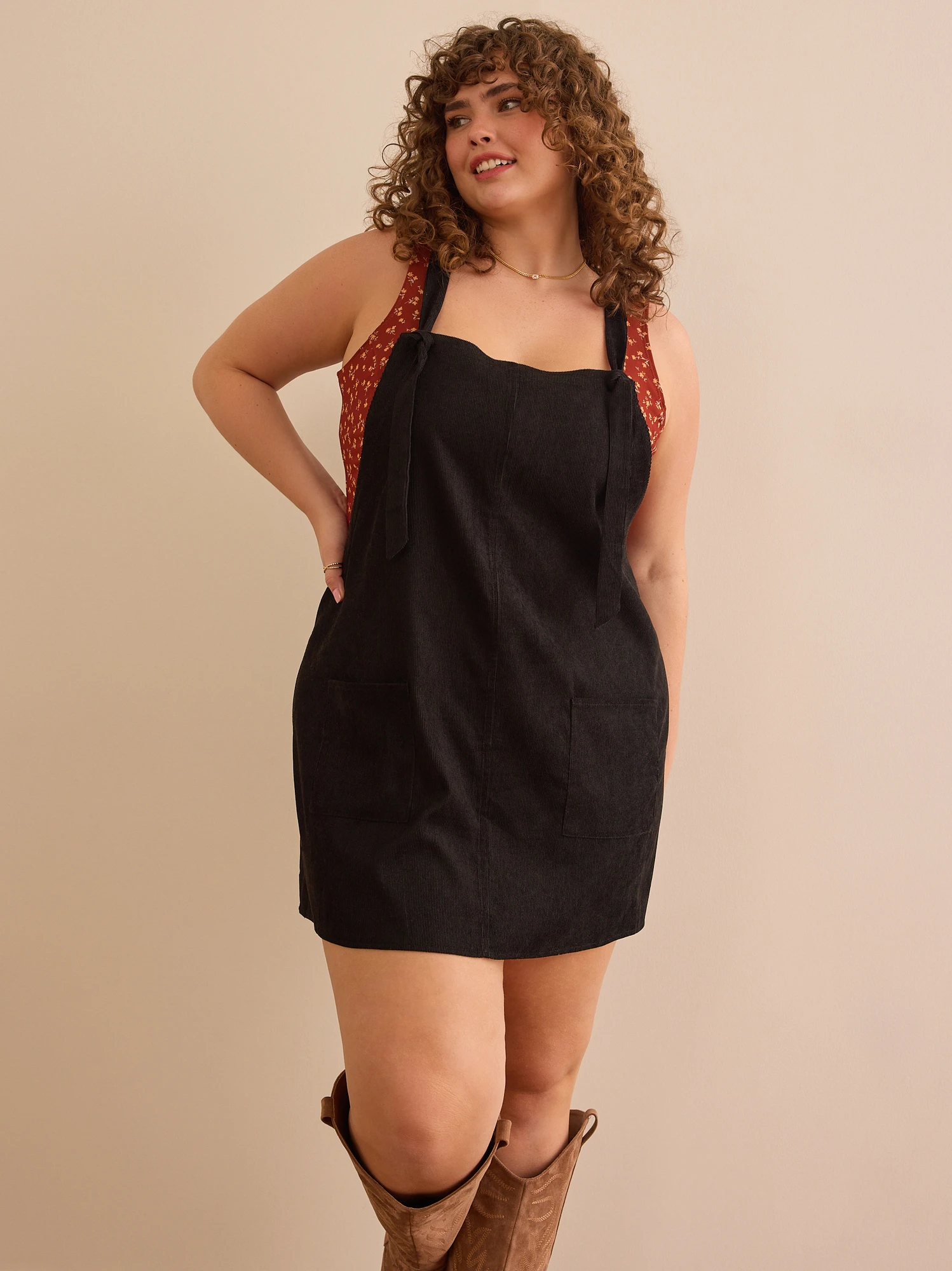 Comfy and cute are definitely at the top of our shopping list, and this piece checks both of the boxes! Its lightweight corduroy fabrication has the best relaxed and breathable fit and is completed with adjustable tie straps. Transition between the seasons by layering over a cozy sweater or a staple bodysuit. From shopping with the girls to date night out, this feminine piece will be your go-to for adorable style!