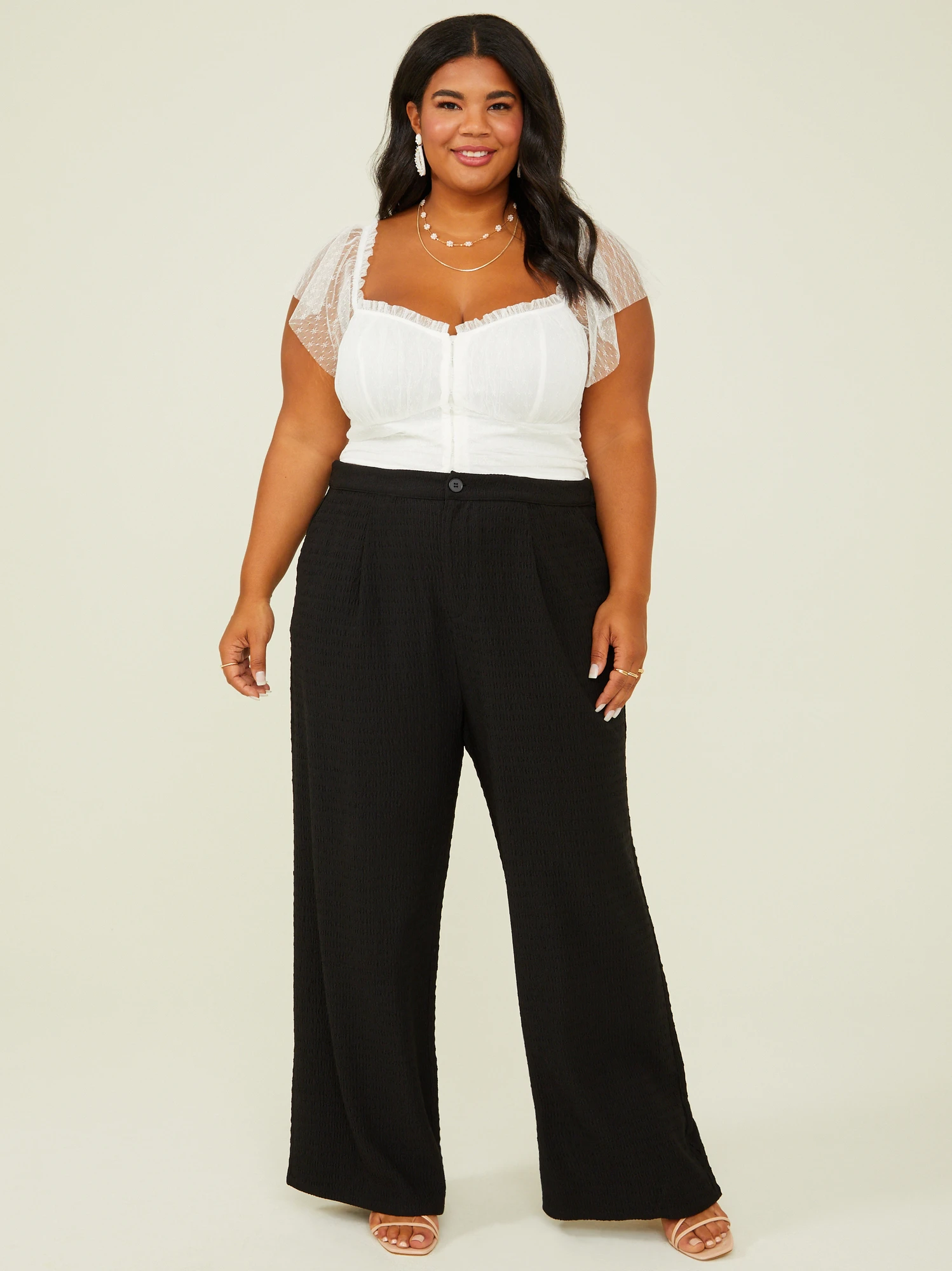 The perfect combination of style and comfort, these trouser pants are designed to elevate your look with their unique texture and breathable fit! These bottoms feature a flattering look with the fitted waist that flows into lightweight pants that ensure freedom of movement and a relaxed fit. Versatile enough to wear to the office, a dinner date, or a even a casual outing with friends, these trouser pants will be your new favorite go-to!