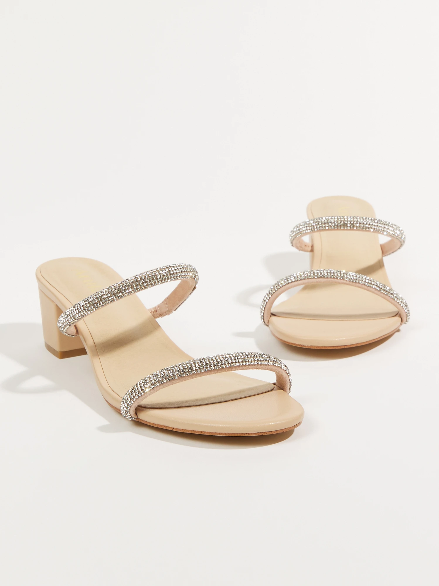 - Rhinestone straps, Padded insoles