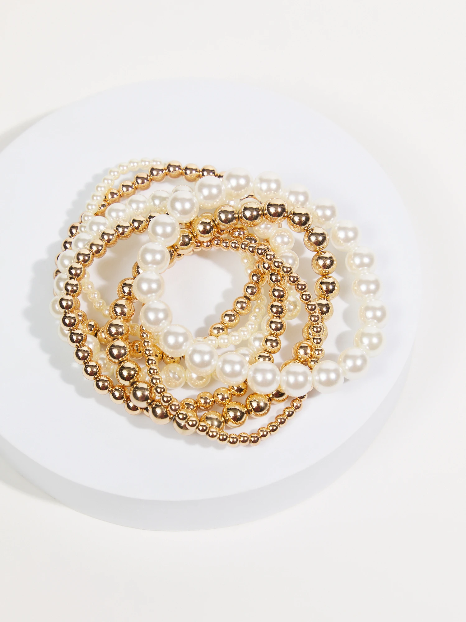 The combination of pearl and gold beading creates a harmonious blend of luxury and understated sophistication, making this bracelet set perfect for a variety of occasions. The stretchy design ensures a comfortable fit, making it easy to slip these bracelets on and off.