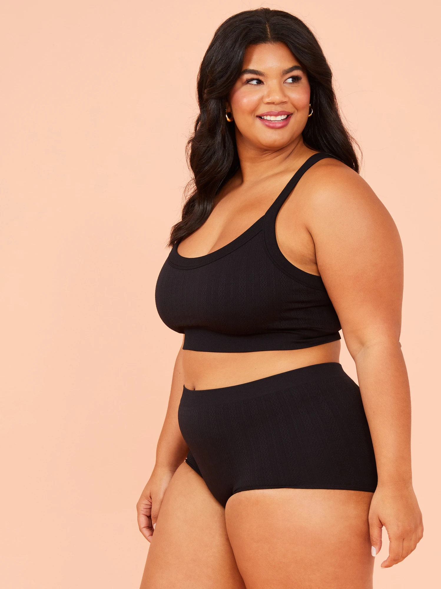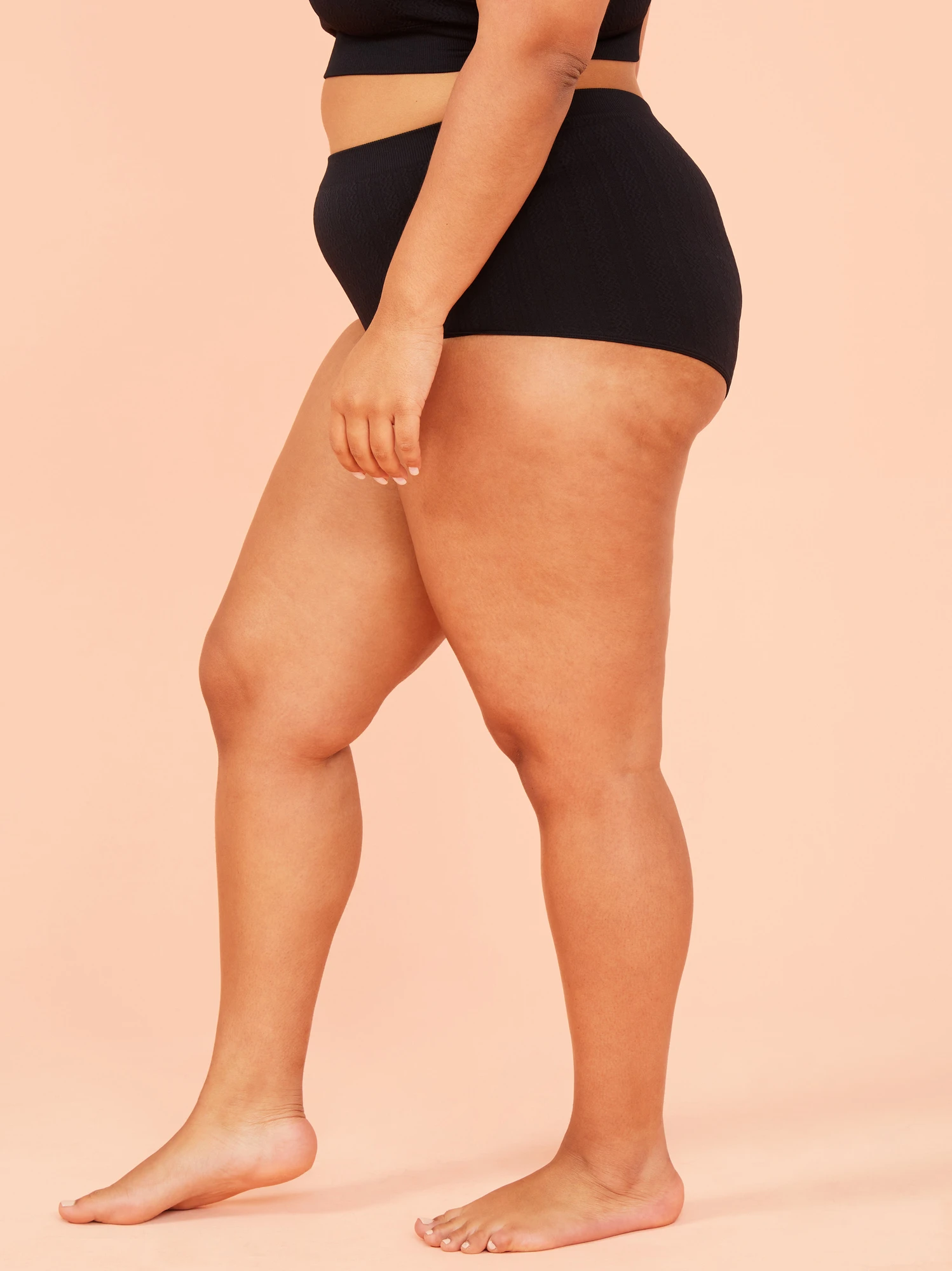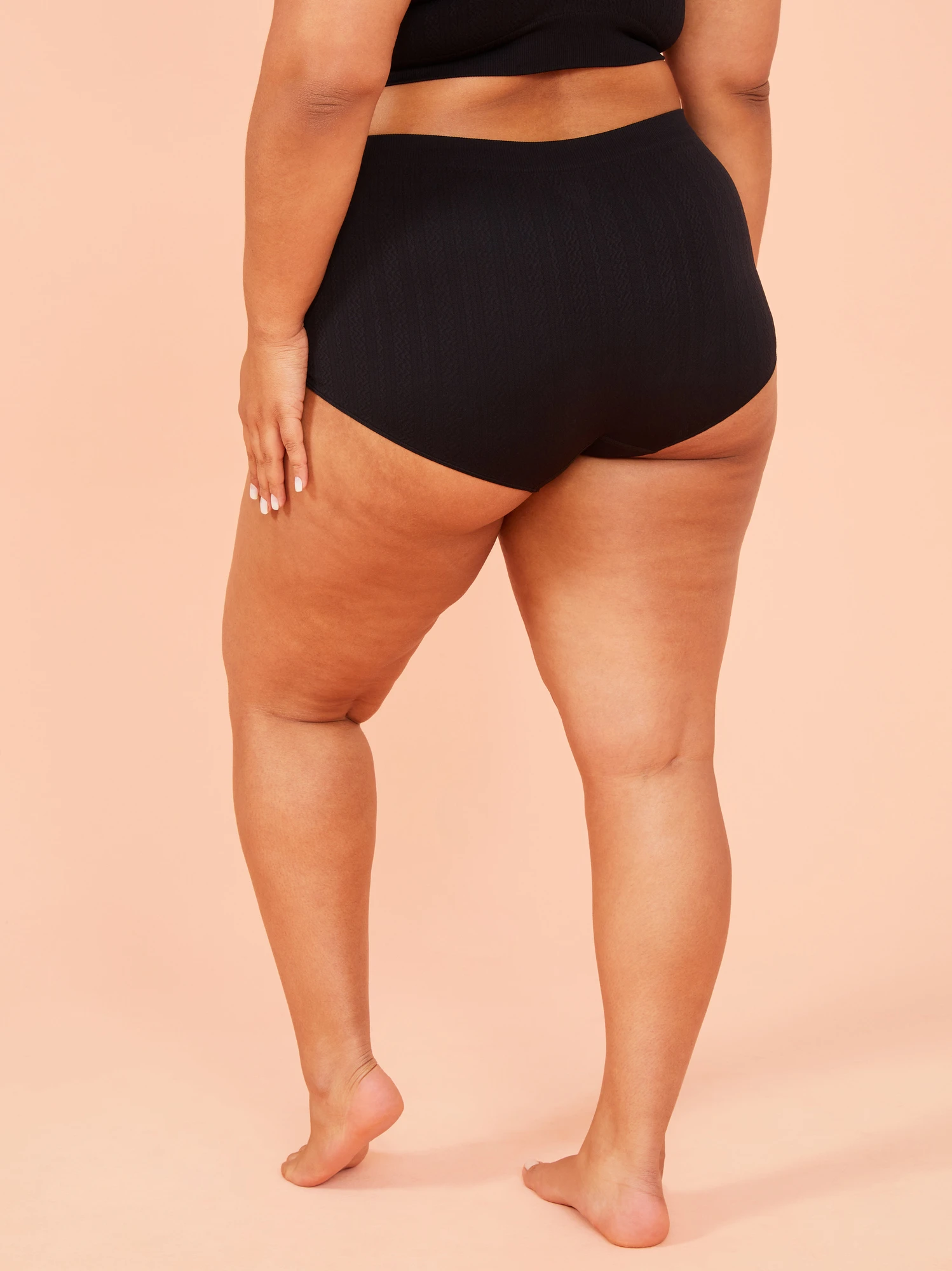 This boyshort undie offers ultimate comfort with its seamless design and soft, stretchy material, while the cable knit texture adds a touch of timeless style. The mid-rise waistband sits comfortably on your hips, and the full coverage of the boyshort style ensures that you feel comfortable all day long. Ideal for lounging at home with the matching Seamless Cable Knit Bralette.
