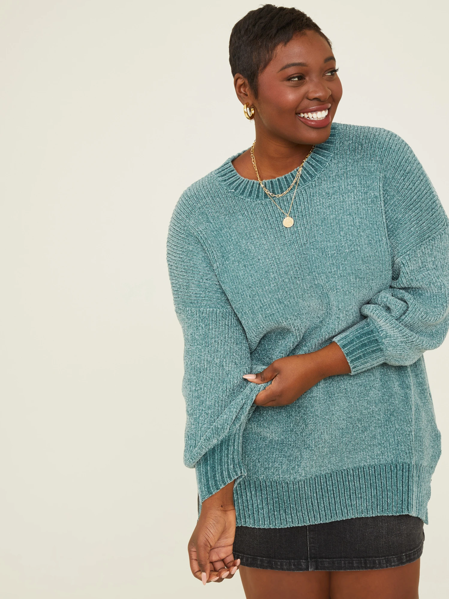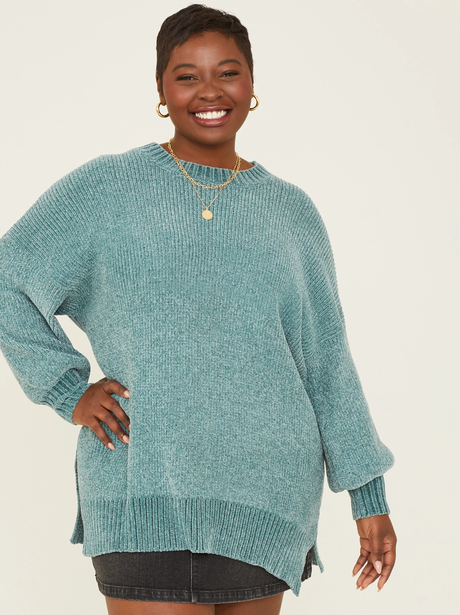 The epitome of cozy chic that’s designed for comfort and style, this unbelievably soft chenille sweater will be your new favorite go-to on chilly days. With a long, tunic fit and breezy side slits, this sweater offers both coverage with a touch of elegance. Its versatile enough to wear with leggings or jeans, making it ideal for various occasions.