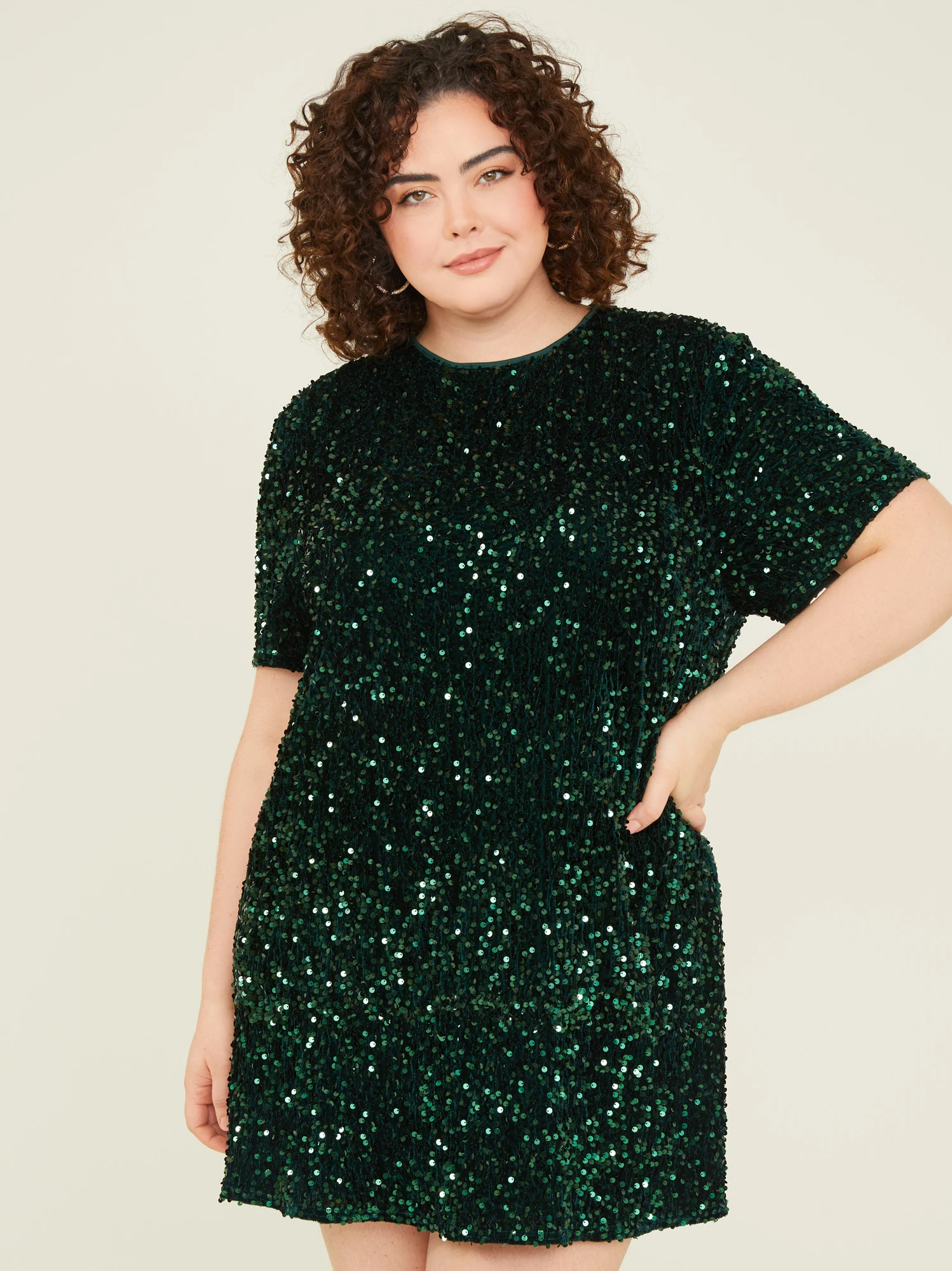 This dress features an all-over petal sequin design on a soft velvet texture, creating a stunning and tactile visual effect. With its soft, fully lined interior, this dress not only looks incredible but also feels exceptionally comfortable against your skin. The back zipper ensures easy dressing while maintaining the sleek silhouette of the shift dress, making it a breeze to wear.
